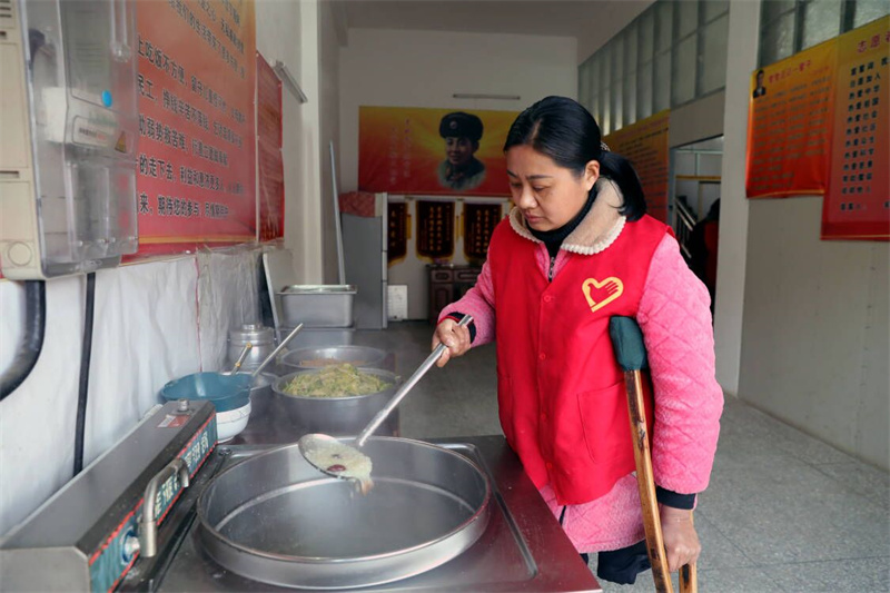 80后的方丹因年幼時的一次意外,造成左腿燒殘截肢,樸實的鄉鄰總是在不經意間給予她各種關心照顧,讓她一直不能忘記。2016年,方丹在宜城市區五條路一家免費愛心粥店做志愿者,每天凌晨4點,她就從30里外的小河鎮朱市家里,騎電動車到市區粥店忙活。由于路途遠,行動不便,2017年4月,方丹就和好友蔡錢錢商量,一起回到朱市老家重開一家免費愛心粥店,傳承愛心接力,造福家鄉特困群體。