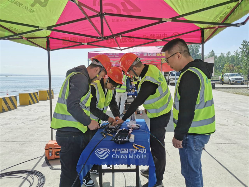 演練分應急電源車發電、應急通信車開通、無人機跨河放纜、4G應急寶開通、傳輸光纜接續比武、互聯網電視開通、沖鋒舟運送物資、潛水泵抽排水作業等科目。演練過程中,各成員分工明確、團結協作,在大家的共同努力下,快速高效地完成了任務。