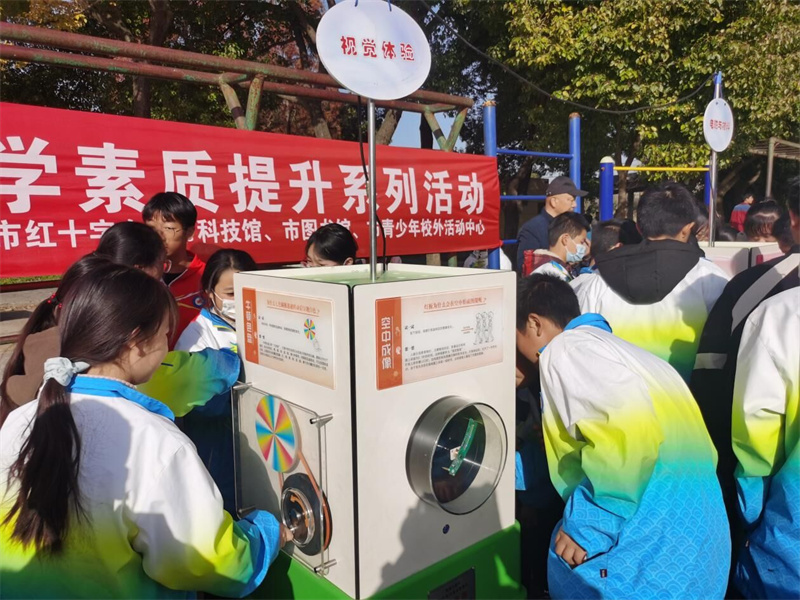 工作人員現場為學生們科普了如何進行簡單急救,科學用眼及保護眼睛,圖書展示等;學生們通過實際操作簡單急救技巧,體驗VR眼鏡,靜電感應,聲波共振,學到了有趣的科技知識,近距離的感知科技帶來的無窮魅力。