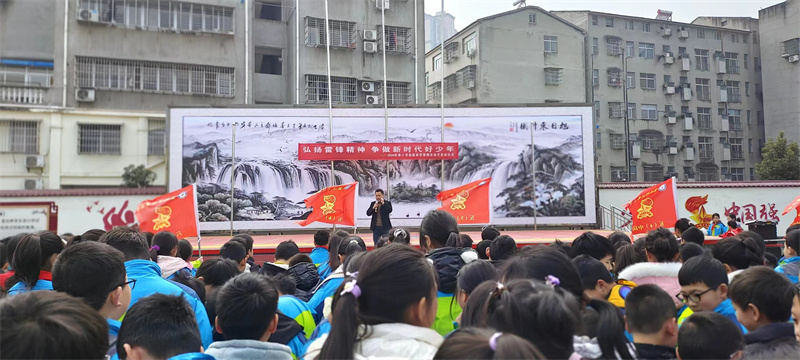 在啟動儀式上,全體師生一起重溫了雷鋒的故事,并齊唱《學習雷鋒好榜樣》歌曲,號召孩子們以雷鋒同志為榜樣,迅速行動起來,用實打實的行動傳承雷鋒精神,爭做新時代的優秀少年。少先隊員代表劉天一同學宣讀《倡議書》。