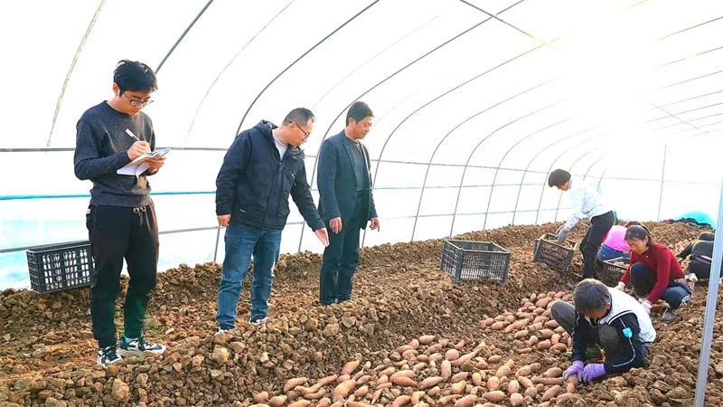 近日,記者在板橋店鎮(zhèn)王臺(tái)村紅薯育苗基地看到,一座座育苗大棚整齊排列,大棚內(nèi)一片繁忙景象,工人們正在排薯、殺菌、覆土,有條不紊地開展育苗工作。