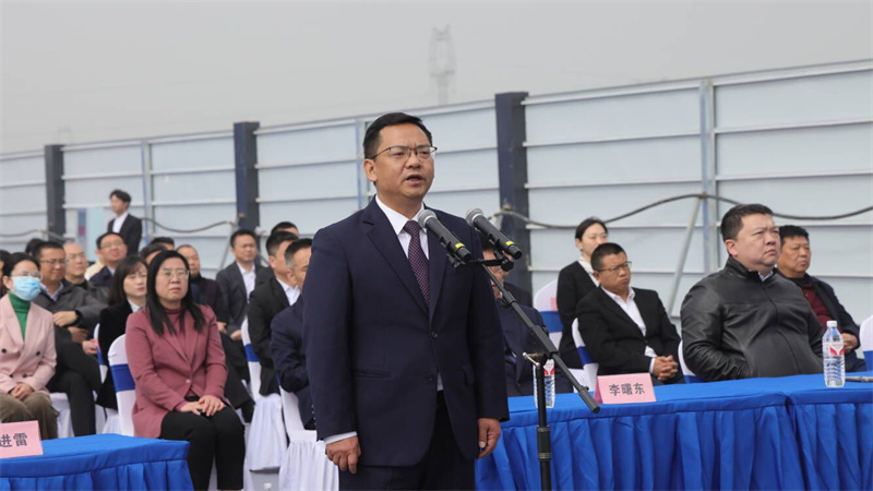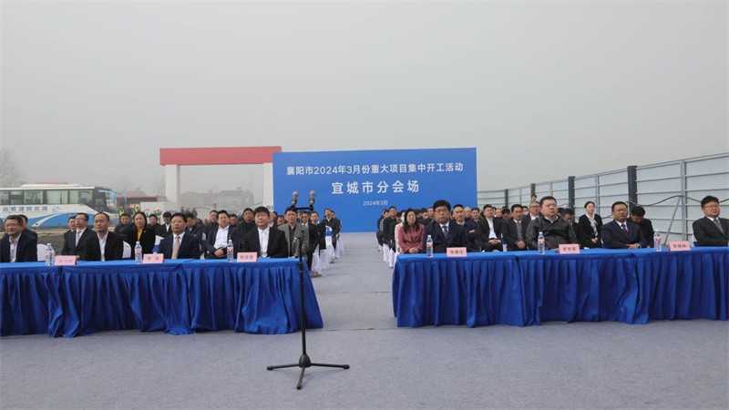 李曙東、陳進雷、李源等市領導在宜城分會場參加活動,市委常委、副市長朱曉林現場介紹宜城3月份8個集中開工重大項目情況。