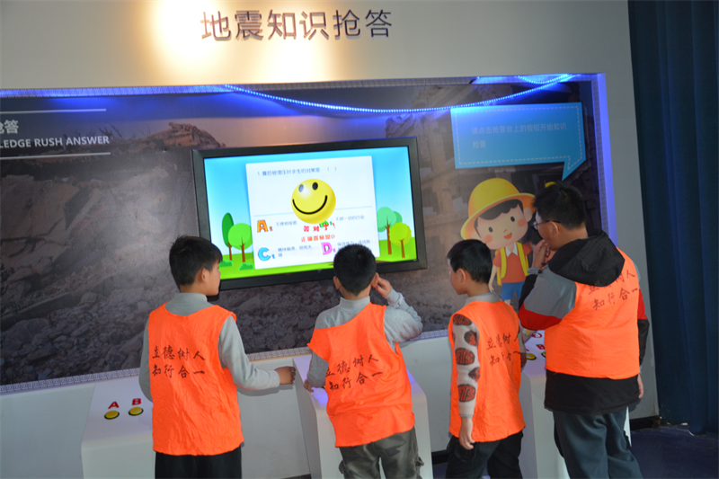 活動中,學生們還到地震體驗館進行了參觀體驗。展廳利用多種現代技術手段,設置不同的板塊,讓同學們更加深入地了解地震基礎知識,親身體驗避險逃生,學以致用。