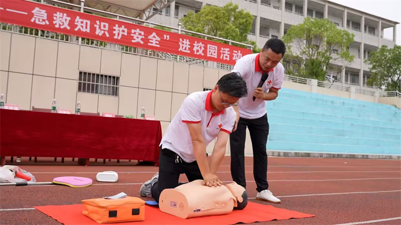 在急救常識培訓環節,市紅十字會工作人員向同學們講解了防溺水知識,從牢記防溺水措施、如何預防溺水、如何辨別溺水、發現溺水時如何自救、如何施救他人等方面進行了全面講解,并通過模擬演示和互動問答的方式,加深大家對急救知識的理解和掌握。