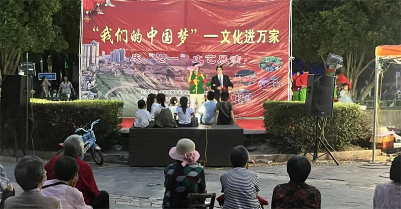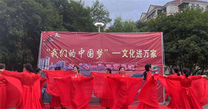 本網訊通訊員楊亦逍 李敏瑞報道:6月27日晚,由中共宜城市委宣傳部、市文化和旅游局主辦,市群眾藝術館承辦的“我們的中國夢”——文化進萬家慶“七一”文藝展演活動在紫陽觀社區舉行,慶祝黨的103歲生日。