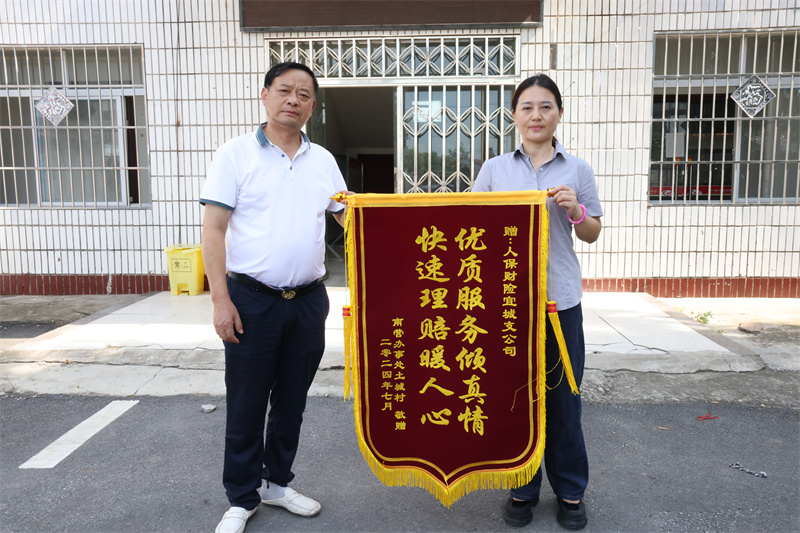 本網(wǎng)訊記者張尚東通訊員徐敏報道:7月24日,宜城市南營街道土城村黨支部書記郝耀柱將一面繡有“快速理賠暖人心 優(yōu)質(zhì)服務(wù)傾真情”的錦旗送到宜城人保負(fù)責(zé)人手中,以此表達(dá)對該公司在災(zāi)后快速理賠的感激之情。