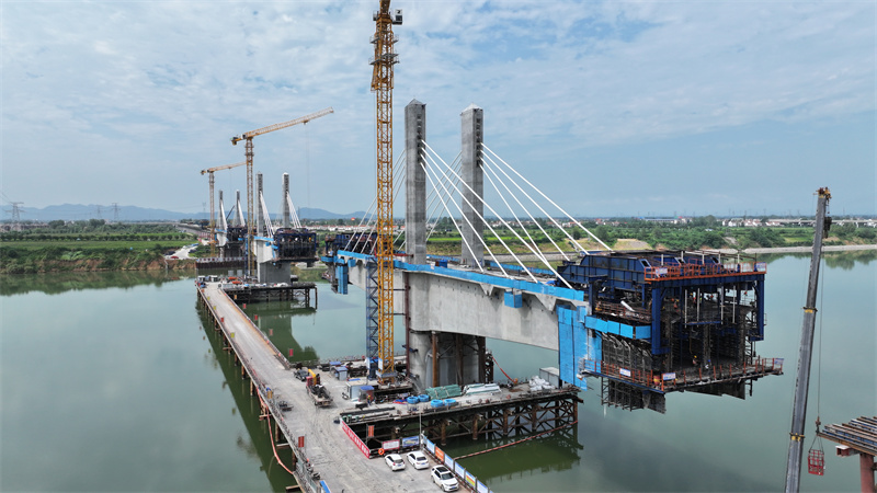 “我們一標段三工區負責0-371號端,其中包含5個連續梁,一個移動模架、一個矮塔斜拉橋,其中5個連續梁已經完成,移動模架還剩6跨,主橋將于10月底完工,計劃明年進行通車。”劉桂坪說。