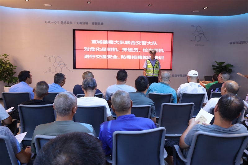 禁毒民警向駕駛員們全方位普及禁毒知識,并重點講解了“毒駕”的危害性。交警結合典型事故案例,對他們進行了交通安全培訓。