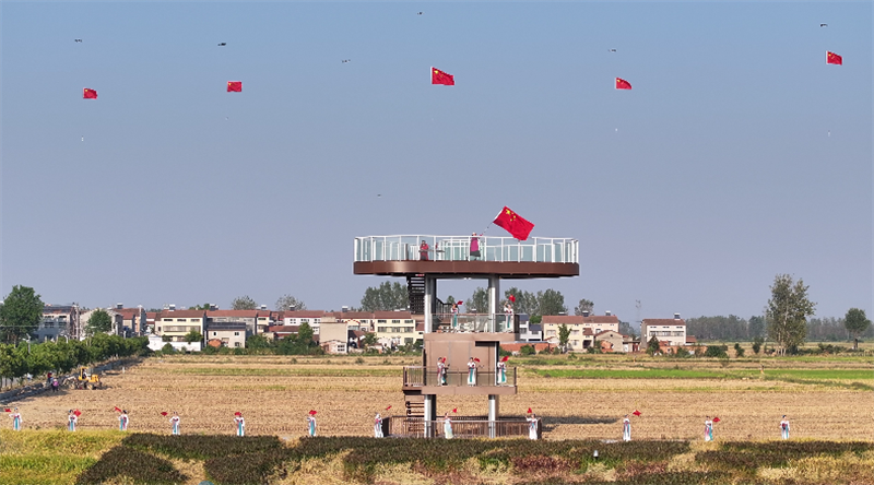 同時,走秀的表演者們身著精美的服裝,手持國旗,在稻田中優雅地行走,展示著對美好生活的熱愛。大家都在用獨特的方式慶祝新中國成立75周年,表達對祖國的深情厚誼。