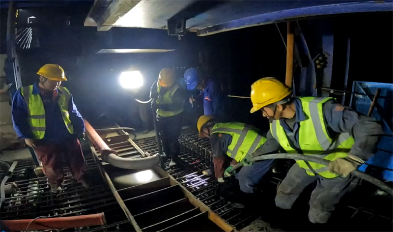 “之所以選擇在夜晚施工,是因為夜晚溫度較低,混凝土澆筑完成后,隨著溫度的升高,使合龍段混凝土始終處于受壓狀態(tài),這會減少合龍段混凝土后期收縮裂縫。”中鐵大橋局集團襄荊鐵路XJZQ-1標項目副總工程師陶俊說。