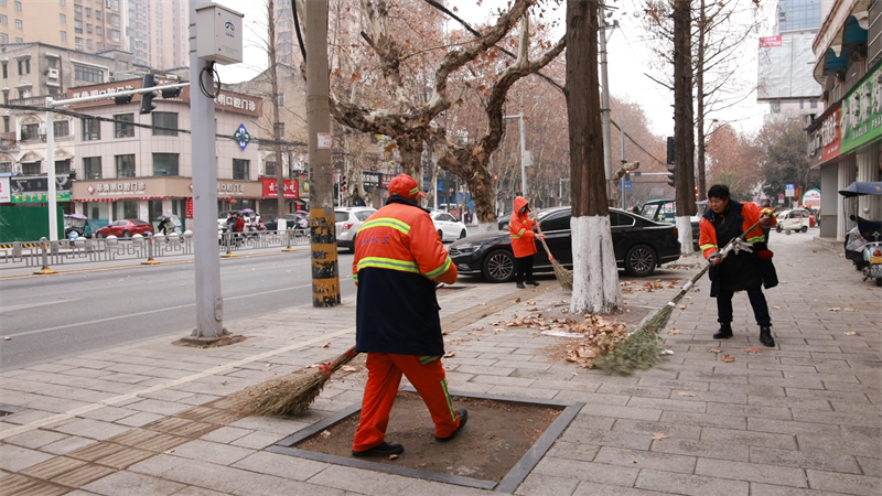 春節期間,在街道上隨處可見環衛工人拿著掃帚,仔細清掃著落葉和果皮紙屑,讓城市以整潔的面貌迎接每一位歸鄉游子和出行市民;垃圾轉運工人也開著垃圾轉運車穿梭在垃圾收集點,將裝滿垃圾的垃圾桶傾倒、清運,確保垃圾不堆積、不滯留。