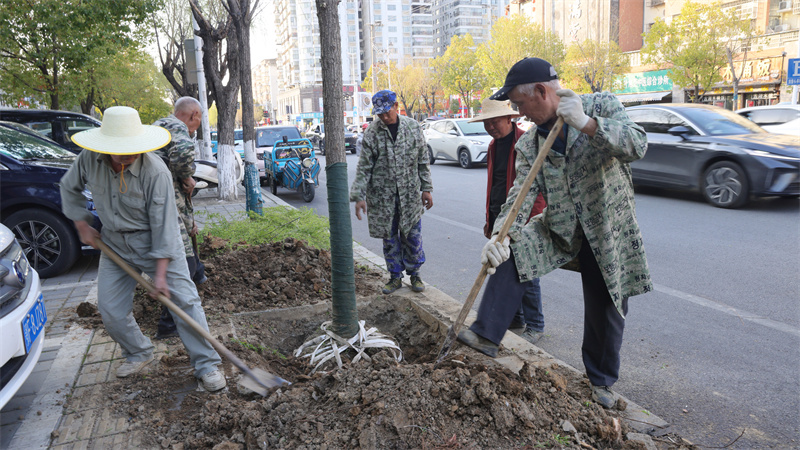3月24日,在城區(qū)隨處可見園林工人忙碌的身影,大家翻土、施肥、選苗、培土……分工協(xié)作,默契配合,精心栽植新的苗木。