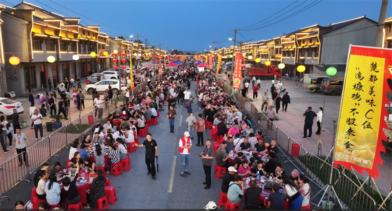 “尋味”二字,在琳瑯滿目的美食中得到了完美詮釋。小河鎮高康村農家樂從最早的幾家到如今的32家,32家特色餐飲店煥然一新,星級農家樂與地道美食相得益彰,昔日的“美食長廊”蝶變為今天的“美食地標”,正逐步成為宜城市一張亮麗的名片,吸引著八方游客慕名而來,共同見證這場由舌尖到心尖的旅行。高康美食街口街口的招牌菜"盤龍鱔",源自《楚辭》中"肴蒸兮蘭藉"的宴飲禮儀,廚師以古法剔骨留形,鱔段盤曲如青銅器上的蟠螭紋;轉角"張家食府"的臘肉粑粑,選用本地土豬,腌制技藝可追溯至明清漕運繁盛時期,每一口咸香都帶著漢水文化的江湖記憶。游客行走在美食街,可以循著楚式屋脊的鳳鳥紋飾漫步,用眼神繪就“宜城美食輿圖”,舌尖品味的不僅是食物,更是一部立體的宜城編年史。美食趕大集,趕的是人間煙火、集的是鄉情記憶,趕的是濃厚的人情味、集的是淳樸的民風,以美食作筆勾勒出甜蜜的童年記憶;美食街巡演,許多市民漫步在街中,被陣陣飄來的香氣吸引駐足,或是品嘗特色小吃,或是與親友分享美食,歡聲笑語回蕩在古色古香的街道上,每一道菜品都像是宜城城鄉風味的“密碼本”,在游樂和巡演中加深對宜城飲食文化的理解。一場以楚國宮廷禮儀為核心的文化盛宴——《楚王宴》大型情景劇更是在此次開街活動中華麗上演,通過沉浸式舞臺表演、文物復原展示與互動體驗,生動再現了楚王宴飲的恢弘場景,帶領游客穿越千年,感受荊楚文明的璀璨與禮儀之邦的風范。美食在此不再是簡單的果腹之物,而是承載了歷史與情感的敘事載體。