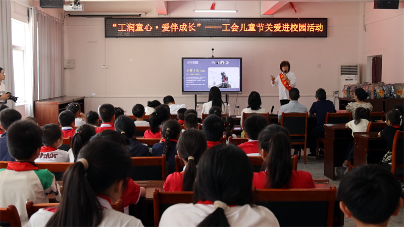 活動中,陳珊還與襄陽市總工會有關(guān)負(fù)責(zé)人為現(xiàn)場學(xué)生發(fā)放大禮包,提前為孩子們過了一個“特別”的兒童節(jié)。
