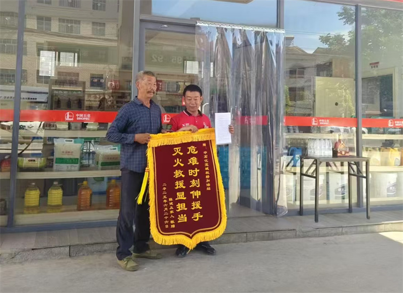 本網訊通訊員劉純井報道: 近日,中石化宜城板橋加油站收到板橋店鎮朝陽東路一組居民李健的感謝信與錦旗,對加油站工作人員在危急時刻英勇撲滅火災、避免重大災難發生的善舉表達感謝。