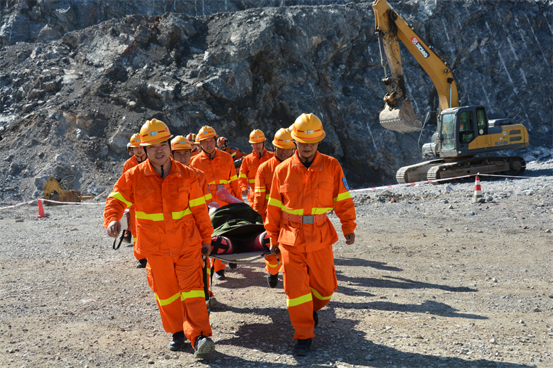 本次演練以實戰為導向,模擬受持續強降雨影響,海鴻鑫非煤礦山作業區突發山體滑坡,導致多名作業人員被困的緊急場景。演練完整呈現從“事故”發生到成功救援的全鏈條響應:現場巡查人員發現險情后,迅速按程序逐級上報至企業、屬地雷河鎮政府、市應急管理局及市政府;市政府立即啟動應急預案,緊急調派市礦山救護隊、市消防救援大隊、市公安局、市急救中心等專業力量趕赴現場;救援隊伍抵達后,迅速展開人員搜救、現場警戒、險情評估、滑坡體臨時加固、醫療急救、環境監測等工作。經過緊張有序的協同作戰,被困人員被成功救出并轉移救治,滑坡體得到有效控制,次生災害風險被消除。