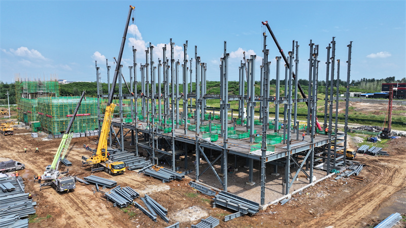 本網訊記者李勤通訊員周文清 王莉報道:8月15日,在湖北回天新材料(宜城)有限公司三期項目現場,7.6萬噸動力電池用膠粘劑擴建工程正加速推進。項目PAA生產車間主體結構將于本月底全面封頂,預計今年年底進入試生產階段。