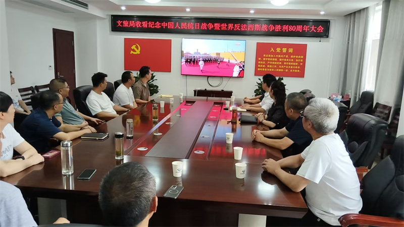 市文旅局干部職工、光榮在黨50年勛章獲得者、退休人員代表,集中收看紀念中國人民抗日戰爭暨世界反法西斯戰爭勝利80周年大會直播。