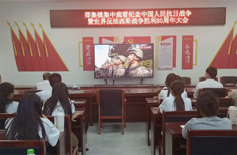 鄭集鎮組織全體機關干部、村(社區)集中觀看紀念中國人民抗日戰爭暨世界反法西斯戰爭勝利80周年大會直播,共同回顧抗戰歷史,緬懷英烈功績,傳承紅色基因。
