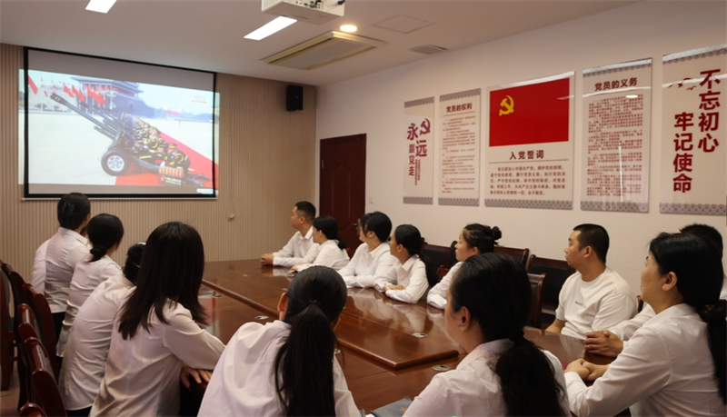 市醫保局組織全體干部職工集中觀看紀念中國人民抗日戰爭暨世界反法西斯戰爭勝利80周年大會直播,共同銘記歷史、緬懷先烈、珍愛和平、開創未來。