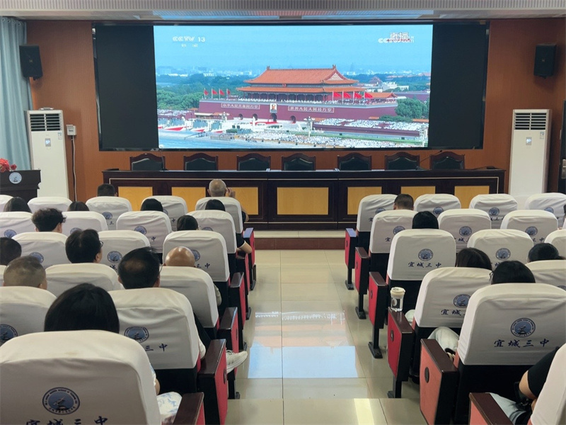 宜城三中組織全體師生集中觀看紀念中國人民抗日戰爭暨世界反法西斯戰爭勝利80周年大會直播,共同回顧那段波瀾壯闊的歷史,深切感受中華民族不屈不撓、團結奮戰的偉大精神。