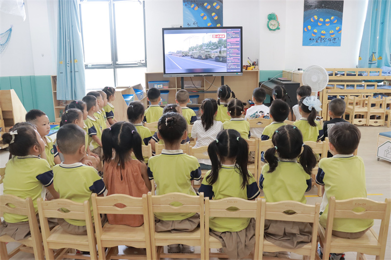 宜城市宋玉幼兒園組織收看紀念中國人民抗日戰爭暨世界反法西斯戰爭勝利80周年大會直播。