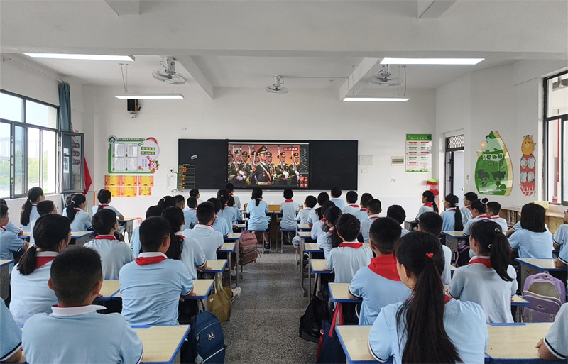 宜城市宋玉小學組織全體師生收看紀念中國人民抗日戰爭暨世界反法西斯戰爭勝利80周年大會直播。