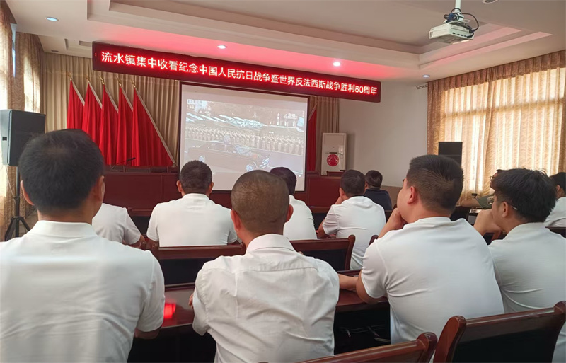 流水鎮組織全鎮黨員干部集中觀看紀念中國人民抗日戰爭暨世界反法西斯戰爭勝利80周年大會直播,共同回顧崢嶸歲月,緬懷革命先烈,汲取奮進力量。