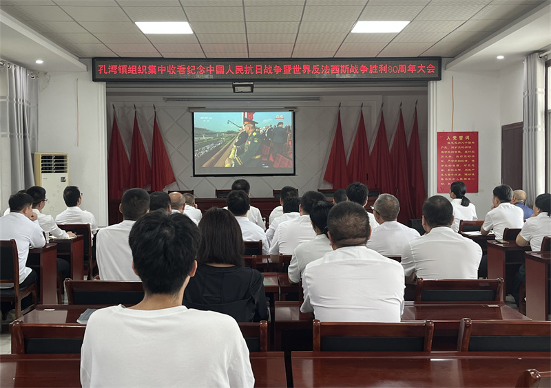 孔灣鎮組織全體機關干部集中收看紀念中國人民抗日戰爭暨世界反法西斯戰爭勝利80周年大會,并開展“銘記歷史、緬懷先烈”主題黨日。