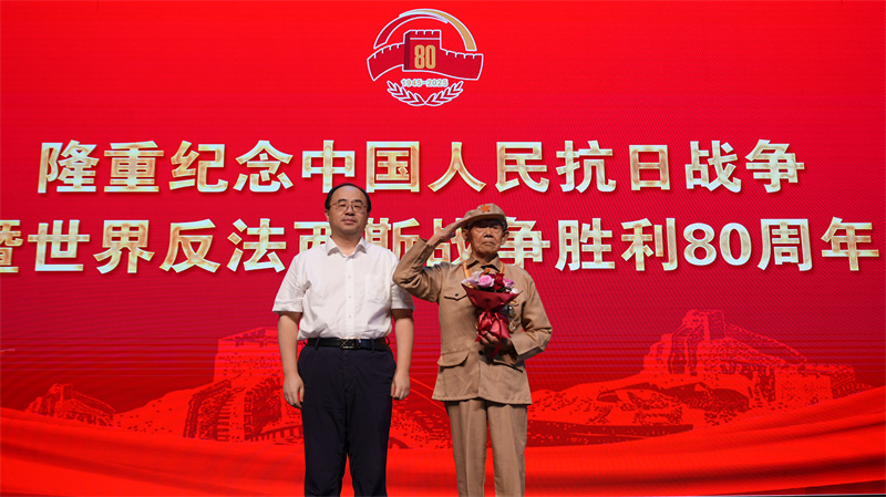 活動現場,武義泉為抗戰老兵丁邦安頒發中國人民抗日戰爭勝利八十周年紀念章,感謝抗戰老兵們為抗戰勝利作出的貢獻。