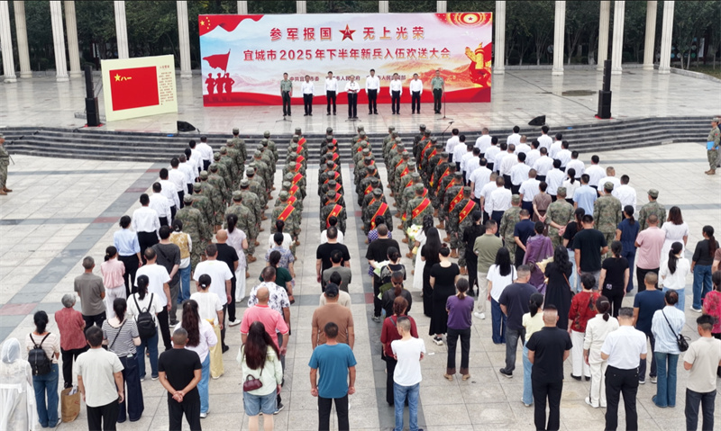 本網訊記者李勤 張尚東通訊員易雷 徐祖富報道: 軍號一響百家應,軍旗一揮壯歌行。9月15日,宜城市在燕京廣場舉行2025年下半年新兵歡送大會,熱烈歡送40余名新兵啟程奔赴火熱軍營。市委書記武義泉,市委副書記、代市長王迪,市人大常委會主任陳進雷,市政協主席李源,市領導朱曉林、付明海、張紅波出席歡送儀式。