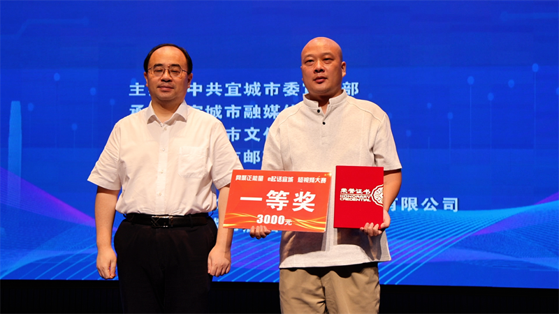 啟動儀式上,省委網信辦、襄陽市委網信辦及宜城市領導共同為短視頻大賽獲獎者頒獎,并向新聘任的網絡正能量傳播推薦官頒發聘書。