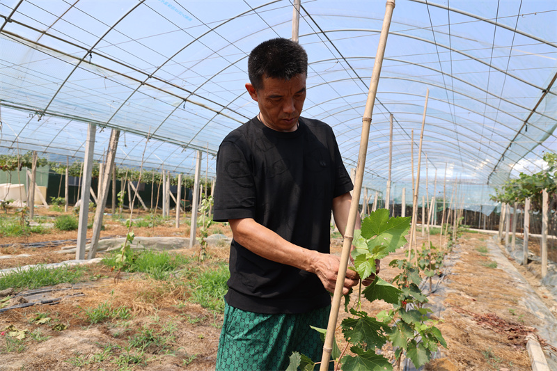 劉光寶查看葡萄新苗的長勢