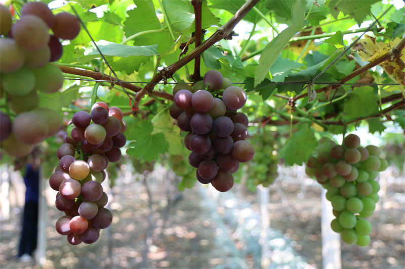 "目前葡萄長勢良好,預計畝產可達3000多斤。按照往年每斤5-6元的收購價,畝均收入約1.5萬元。"劉光寶介紹。今年,長期的高溫天氣給葡萄種植帶來挑戰,部分葡萄出現“燒葉”問題。憑借多年的種植經驗與科學管理方法,劉光寶帶領團隊積極應對,每天組織人力修剪受損果實,確保葡萄品質穩定。