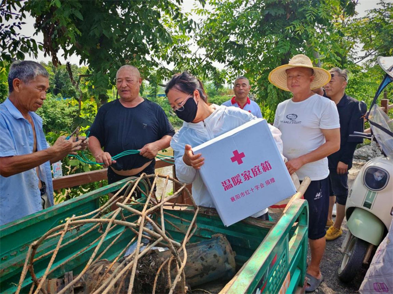 本網訊通訊員候玉杰 王勇報道:面對持續高溫干旱,鄭集鎮魏崗村抗旱灌溉員們始終堅守一線。7月18日,宜城市紅十字會和市公共檢驗檢測中心聯合駐村工作隊為魏崗村一線抗旱人員送去暖心慰問。