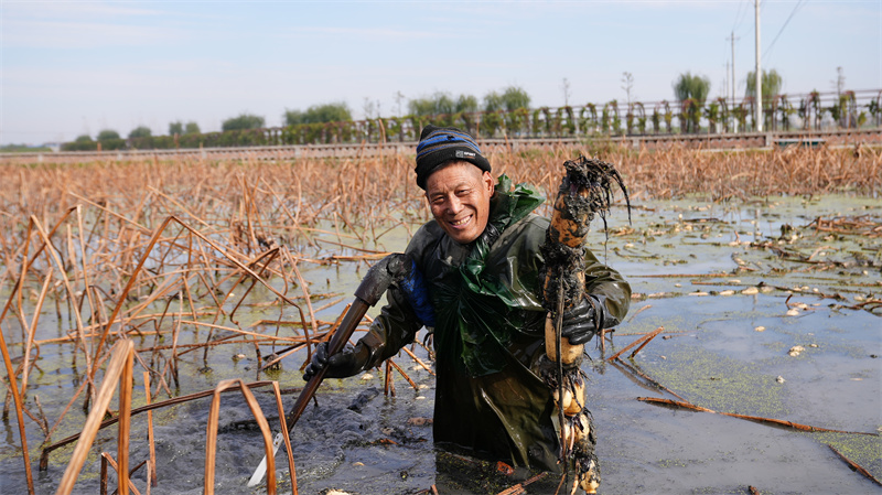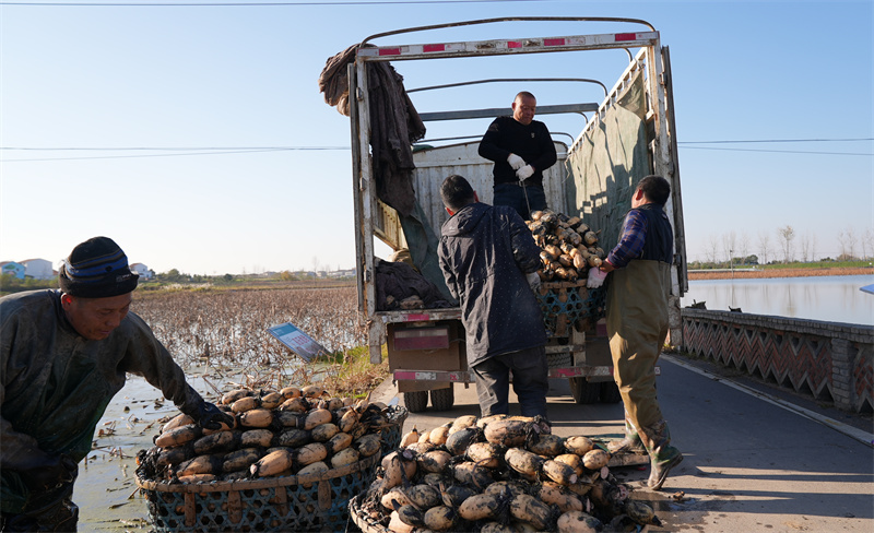 “以前守著這洼地,種啥都怕水淹,一年忙到頭,很可能一場雨就全白費了,沒辦法只能出去打工。”村民余志平感慨道,“現在好了,地里種上了蓮藕,養起了甲魚。夏天游客多的時候,我在旁邊擺個小攤,生意不錯。現在冬閑時節,我來采藕又能掙一筆工資。掙錢、顧家兩不誤,這心里啊,特別踏實!”